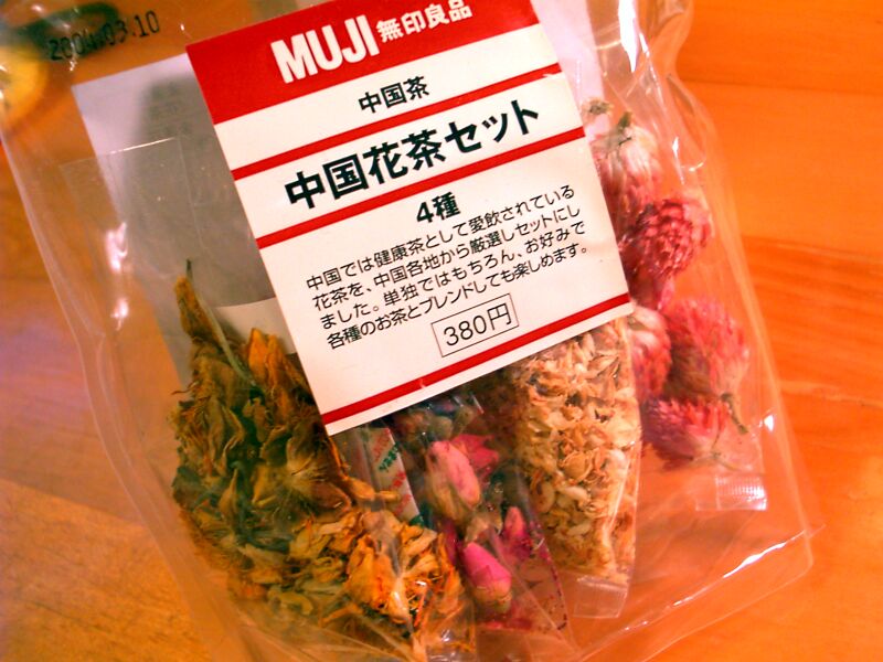 写真は、7月に山口に行ったとき、ちょっと足を伸ばして、無印シーモール下関店で購入していた、無印の中国花茶セットです。「これは綺麗だ…」なんて眺めながら、しばらくその存在すら忘れてましたが、先週の土曜日に、渋谷の華泰茶荘で"
